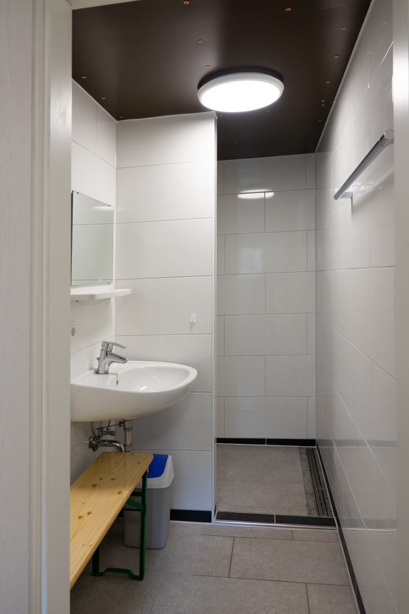 Die Campinganlage verfügt über 1 Sanitärgebäude mit 2 Herren- und 2 Damenduschen und je 2 Toiletten. Die Warmwasser-Waschbeckengarnituren sind ohne Zeitschaltung, also “wie Zuhause”. Die Duschen werden mit Münzautomaten ( 50 Cent ) bedient. Die Sanitäranlagen wurden kürzlich vollständig renoviert.